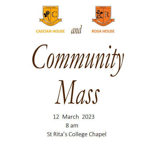 Parents and Guardians are cordially invited to join us for our Community Mass on Tuesday 12 March at 8.00am. The mass will be held in the College Chapel.