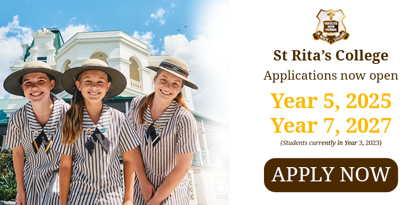 As a highly regarded Catholic independent school for girls in Years 5 to 12, demand for places at St Rita’s College is always high. If you have family or friends interested in a St Rita's education for their daughter please encourage them to submit an application or register an expression of interest.